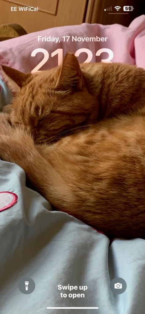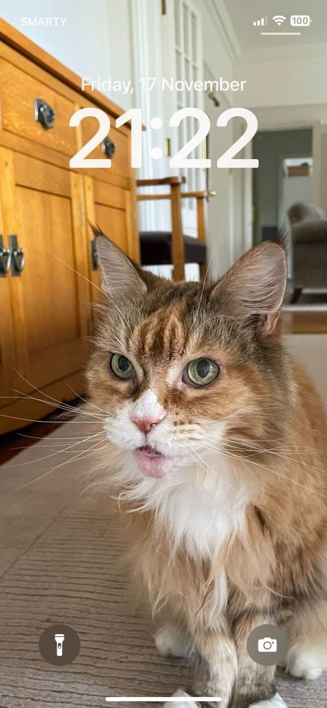 This is Matt’s phone lock screen photo of Pumpkin (my Dad’s aging ginger Maine Coon Cat). Pumpkin is clearly his favourite family member given the he has more photos of her then just about any family member on his phone.